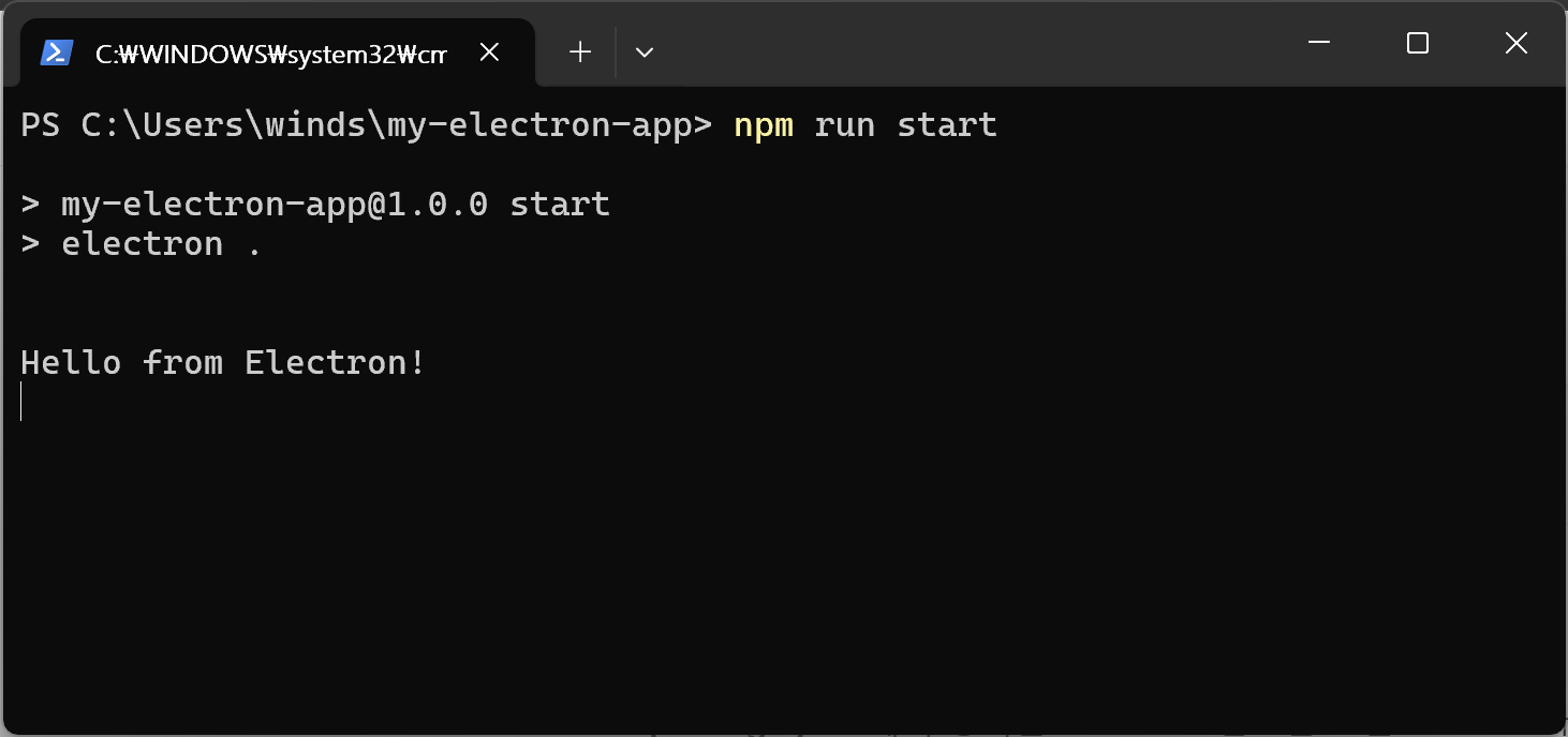start 명령어는 Electron 실행 파일에 현재 디렉터리에서 main 스크립트를 찾아서 개발 모드로 실행하라고 지시한다.